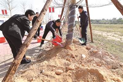 陽春三月,惠風和暢。上午9時30分,將軍山植樹現場生機盎然,余志偉等市領導一下車,便大踏步走向植樹點,手持鐵鍬,與大家分工協作、配合默契,嚴格按照植樹規范,揮鍬鏟土、扶直苗木、培土圍堰、提水澆灌,每一道工序都做得一絲不茍。經過一番忙碌,120多株小葉欖仁樹迎風挺立,為春日的大地披上了嶄新的綠裝。