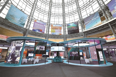 在石獅服裝城展覽藝術中心內,布展工作正有序推進。面輔料融合館內,以彩色線軸為設計元素的裝置錯落而立,工人正在進行細節打磨;流行趨勢館、跨境選品區等展區搭建進入尾聲,“得物潮流智造館”藍綠主色調的展區已整體亮相,盡顯時尚質感。場館外,色彩明快的主題門頭已搭建完成,“鏈通(建議:連通)全球 潮領未來”的標語醒目亮眼。