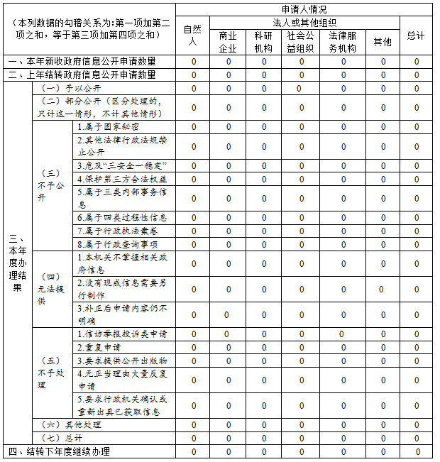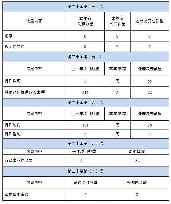 截止12月31日,我局共累計制作、獲取政府信息總數(shù)89條,其中包括主動公開信息數(shù)85條,作為依申請公開信息數(shù)4條;主動公開信息中包括機構(gòu)職能類信息1條,行政許可類信息55條,安全生產(chǎn)、應(yīng)急管理類信息27條,其他類信息2條;公開形式為采取政府網(wǎng)站公開;轄區(qū)內(nèi)政務(wù)公開統(tǒng)計報送單位1個;咨詢接待情況包括現(xiàn)場接待人數(shù)17人次,咨詢電話接聽數(shù)7人次;回應(yīng)解讀情況包括政府網(wǎng)站在線訪談1次,政策解讀稿發(fā)布9篇我局本年度無收到政府信息公開申請的情況,無因政府信息公開工作被申請行政復(fù)議、提起行政訴訟的情況,也無被舉報、投訴情況。