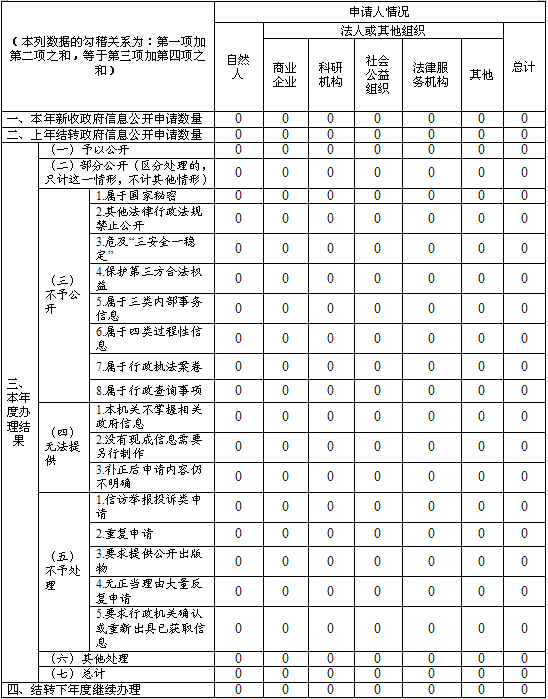 2019年,我局未受理政府信息公開(kāi)申請(qǐng),未發(fā)生因政府信息公開(kāi)被申請(qǐng)行政復(fù)議、行政訴訟情況。