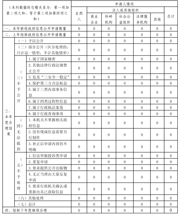 未收到群眾依申請公開件,未發生因政府信息被群眾申請行政復議或被提起行政訴訟情況。