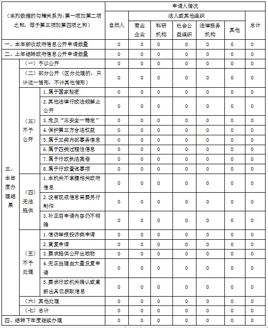 (二)依申請公開。我局未受理政府信息依申請公開。