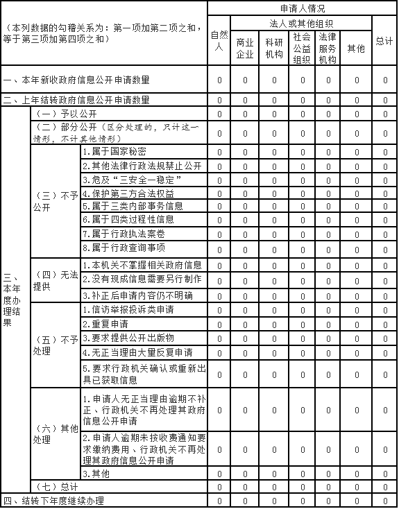 本報告根據《中華人民共和國政府信息公開條例》《國務院辦公廳政府信息與政務公開辦公室關于印發<中華人民共和國政府信息公開工作年度報告格式>的通知》要求,結合我單位政府信息公開工作有關統計數據撰寫完成。報告主要包括:總體情況、行政機關主動公開政府信息情況、行政機關收到和處理政府信息公開申請情況、因政府信息公開工作被申請行政復議、提起行政訴訟情況、政府信息公開工作存在的主要問題及改進情況、其他需要報告的事項等。本年度報告中所列數據統計期限從2022年1月1日至2022年12月31日,報告電子版可從石獅市人民政府門戶網站(http://www.bklzg.com/)下載。如對本年度報告有疑問,請與泉州市石獅生態環境局聯系,地址:石獅市回興路792號,郵編:362700,電話:0595-83083886,電子郵箱:fjsshbj@163.com。