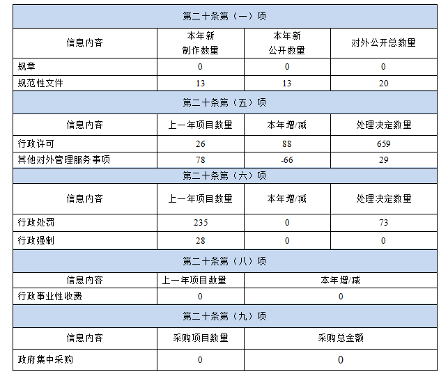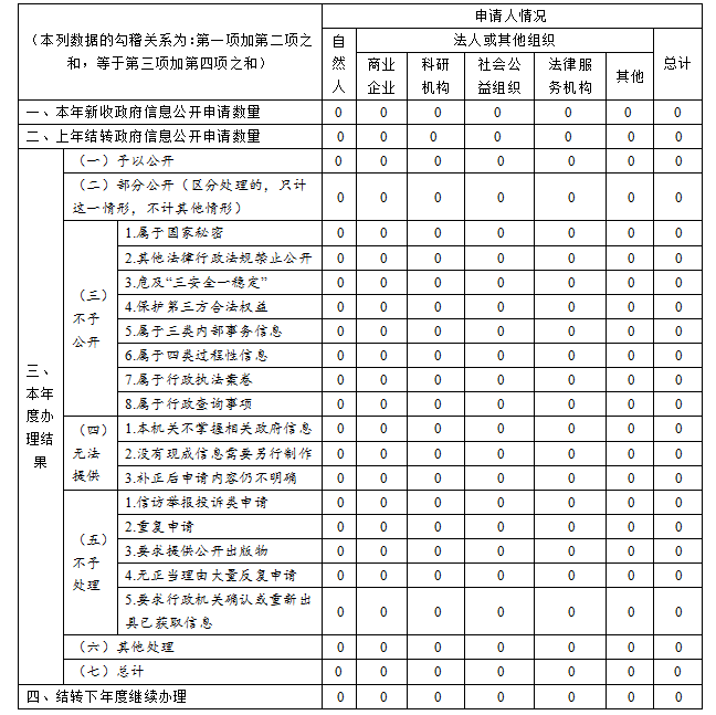 2020年度我局未收到依申請公開事項,無被申請行政復議、被提起行政訴訟和接受行政申訴、舉報的情況。