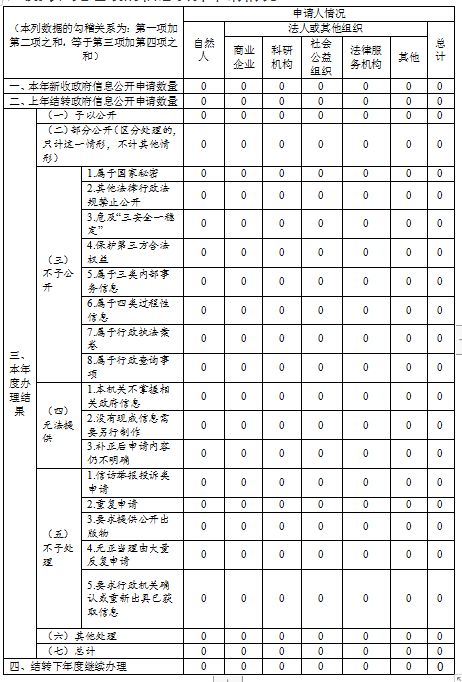 本報告依據《中華人民共和國政府信息公開條例》(國務院令第711號)以及《國務院辦公廳政府信息與政務公開辦公室關于政府信息公開工作年度報告有關事項的通知》(國辦公開辦函〔2019〕60號)要求,結合我單位政府信息公開工作有關統計數據撰寫而成。報告主要包括總體情況、主動公開政府信息情況、收到和處理政府信息公開申請情況、政府信息公開行政復議和行政訴訟情況、存在的主要問題及改進情況和其他需要報告的事項。本年度報告中所列數據統計期限從2020年1月1日至2020年12月31日。本年度報告電子版可從石獅市人民政府門戶網站(http://www.bklzg.com/)下載。如對本年度報告有疑問,請與石獅市退役軍人事務局辦公室聯系(地址:石獅市八七路公務大廈3樓302室,電話:0595-83050003,郵編:362700)。