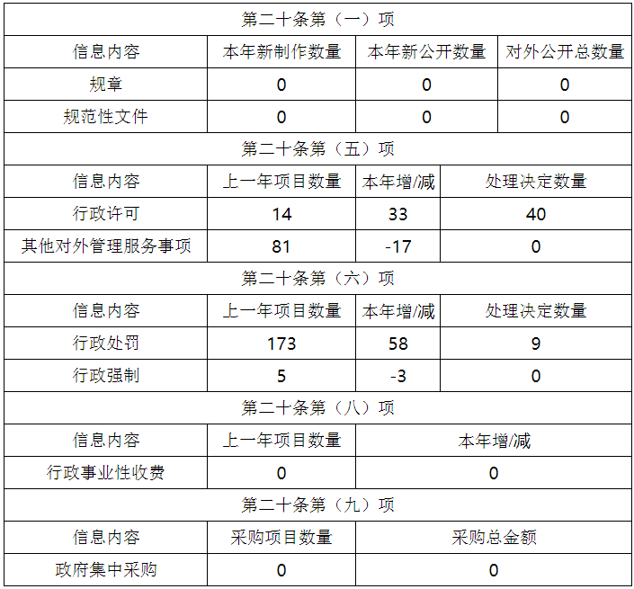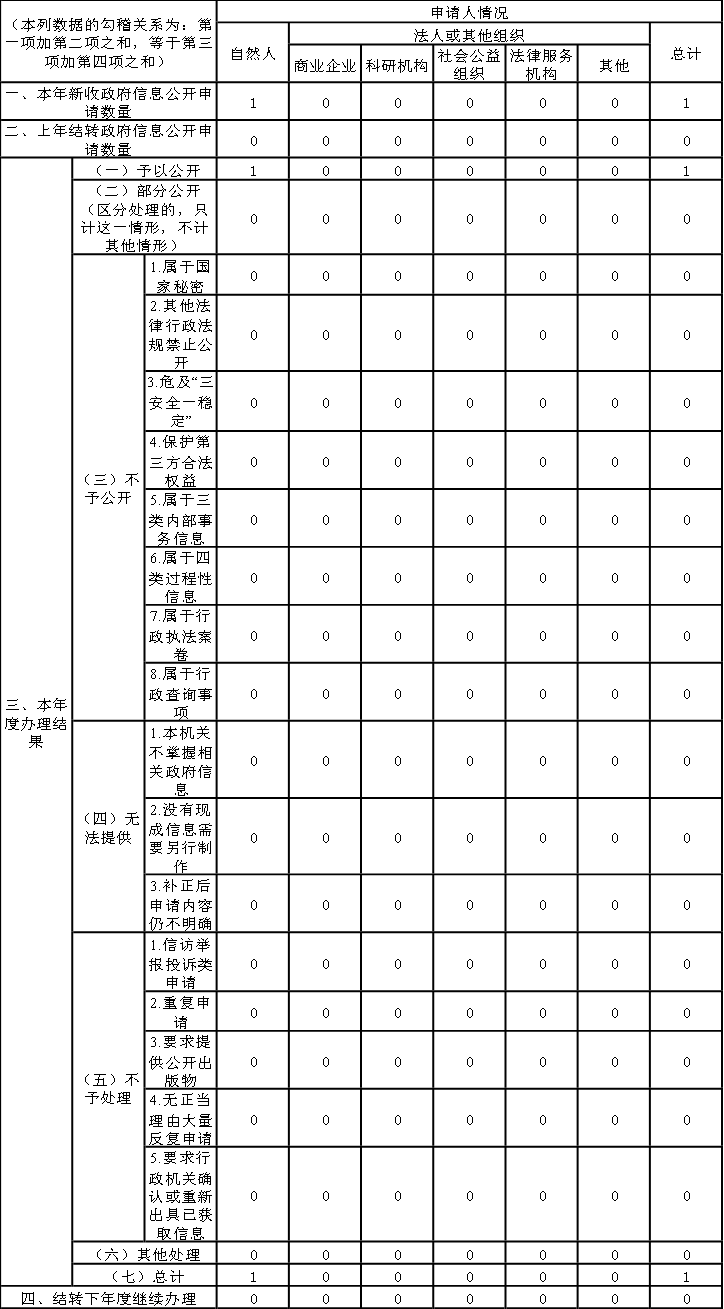 2020年度我局接到1條群眾提出政府信息公開的申請,未發生因政府信息公開被申請行政復議、被提起行政訴訟情況。