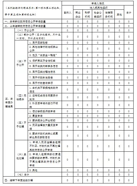 2021年受理申請的數量0條,未接收到書面或其他形式要求公開政府信息的申請,本年度依申請公開0項。