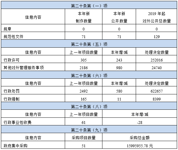 2020年,我市持續推進政務決策、執行、管理、服務、結果“五公開”,在市政府網站發布政務信息8616條,訪問量74.9萬人次,其中政府信息公開專欄法定公開內容信息898條;設立政務公開重點工作欄目21個、專題專欄12個。一是圍繞貫徹落實十九屆四中、五中全會精神加強用權公開。加強權力配置信息公開,更新完善本級權責清單,組織編寫25個政府組成部門機構職能目錄并向社會公開。加強權力運行過程信息公開,出臺《石獅市全面推進基層政務公開標準化規范化工作方案》,組建工作小組,成立各單位工作專班,加強督促協調;制定完善《石獅市解讀回應工作制度》《石獅市政府信息公開申請辦理工作機制》《石獅市政府信息管理動態調整制度》《石獅市基層政務公開與村(居)務公開協同發展制度》《石獅市重大行政決策公眾參與制度》等五項工作制度;在規定時間內編制完成市級26個試點領域、9個鎮(街道)的基層政務公開標準目錄,并向社會公布。二是圍繞“六穩”“六保”加強政策發布解讀。在市政府網站設立“助力‘六穩’‘六保’工作”專題專欄,發布信息61條,助力做好“六穩”工作,落實“六?!比蝿?。加大政策解讀力度,共發布或轉發解讀信息80條,開展在線訪談20場次。三是圍繞優化營商環境加強政務信息公開。提高市場監管規則和標準公開質量,設立“雙隨機一公開”專題專欄,今年來發布信息99條。提高政務服務透明度便利度,加強“一件事”“一類事”等綜合辦事信息公開,編制“辦事一本通”,匯總1115項審批事項的辦事流程、申報材料、咨詢電話、監督舉報方式等辦事服務信息。四是圍繞應對突發事件加強公共衛生信息公開。在市政府網站設立“統籌疫情防控與經濟社會發展”專題專欄,及時發布疫情動態信息,今年來已發布信息504條。加強各級各類應急預案公開和公共衛生知識普及,今年來已發布相關基本醫療衛生信息139條。