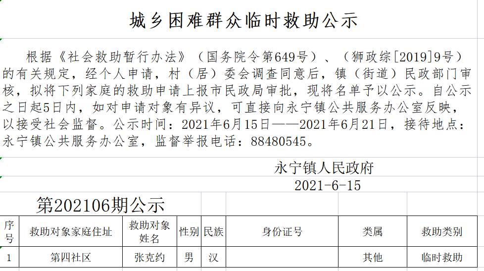 【社會(huì)救助】石獅市永寧鎮(zhèn)2021年第四期城鄉(xiāng)困難群眾臨時(shí)救助公示