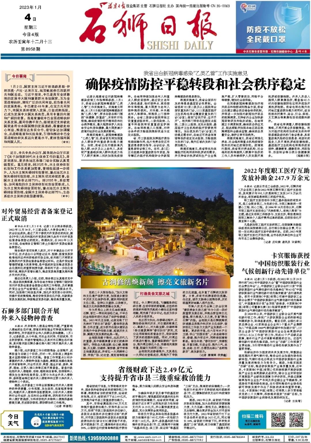 作為靈秀山上的文化地標建筑,石獅、晉江一帶民間信俗之地,千年古剎金相院年前已完成了保護性修繕工程。2023年元旦當晚,記者定格了燈光映襯下的古剎“新姿”,整體恢宏典雅、古樸莊重,成為我市在城鄉建設品質提升中保護傳統古建、延續歷史文脈、賦能文旅發展的經典一筆。
