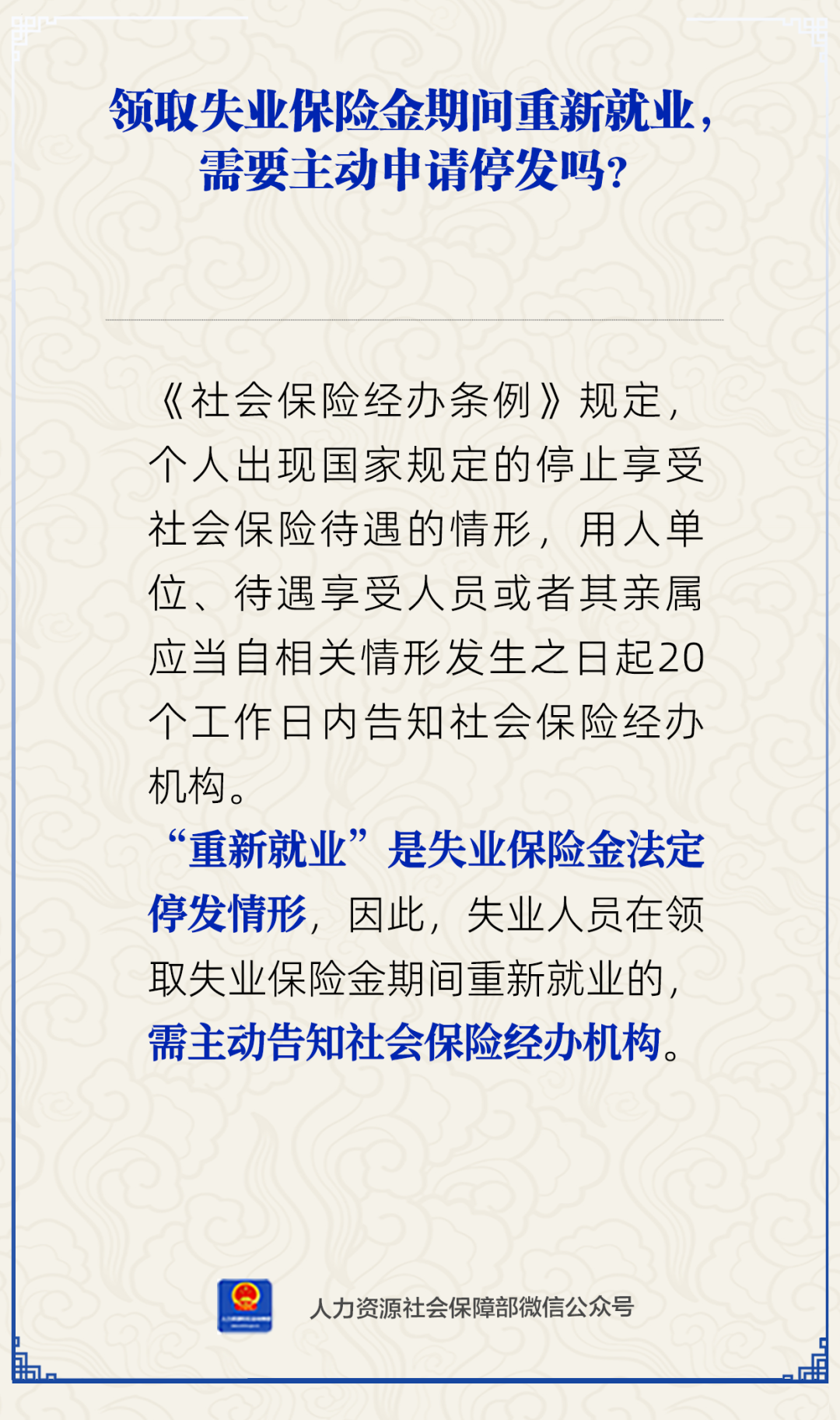 【失業保險】領取失業保險金期間重新就業,需要主動申請停發嗎?